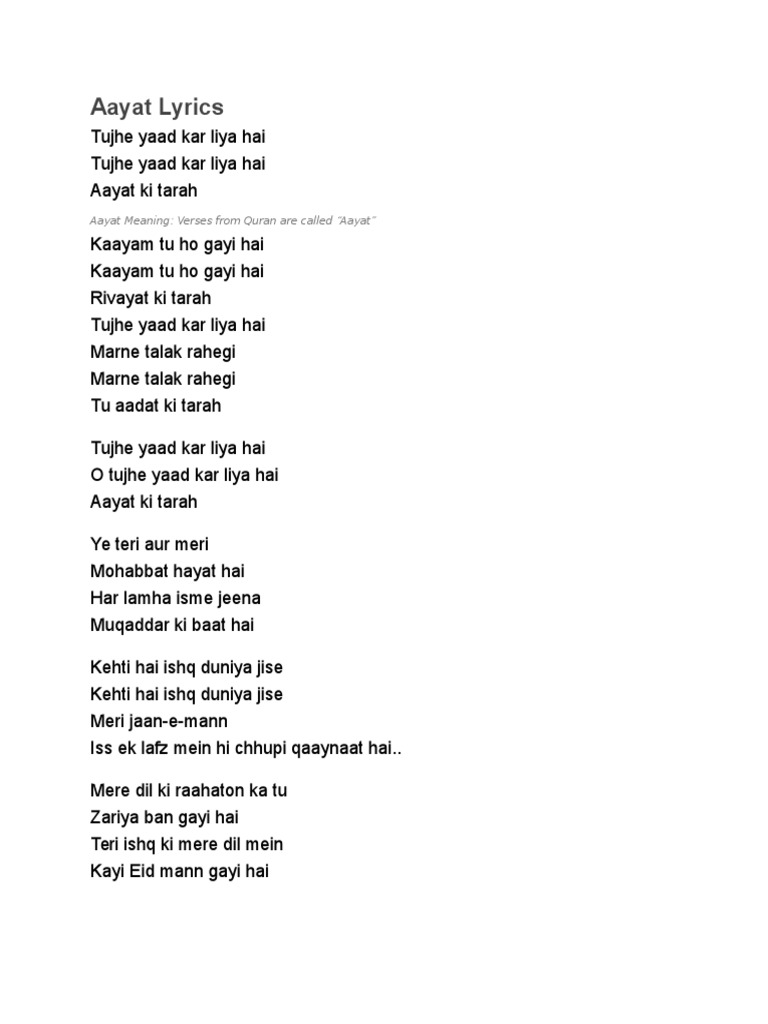 Qtps8ltbcanuim - Aayat song lyrics listed in the site are for promotional purposes only.