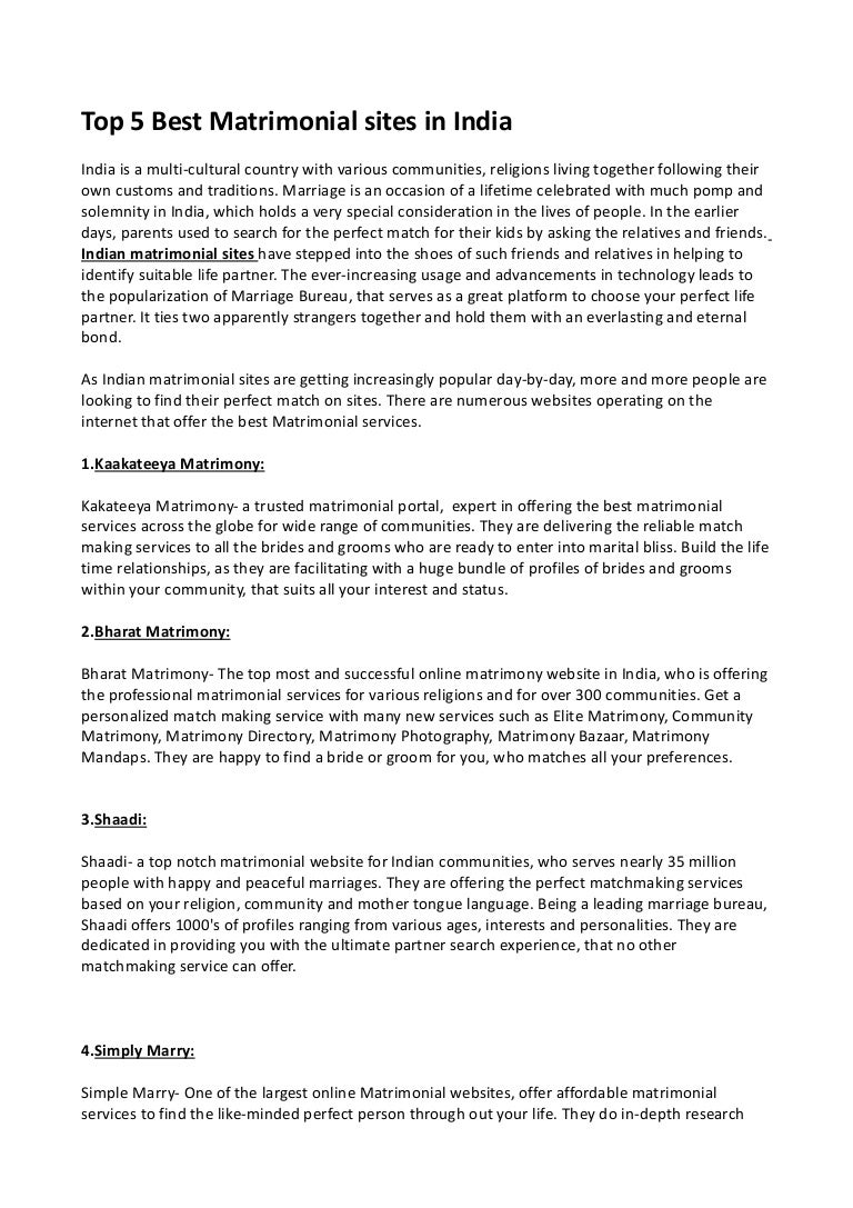 Best Matrimonial Site In India 2019 Best Matrimonial Site In India 2019 : Find hundreds of profiles matching your requirements while maintaining your privacy in this easy to use website.