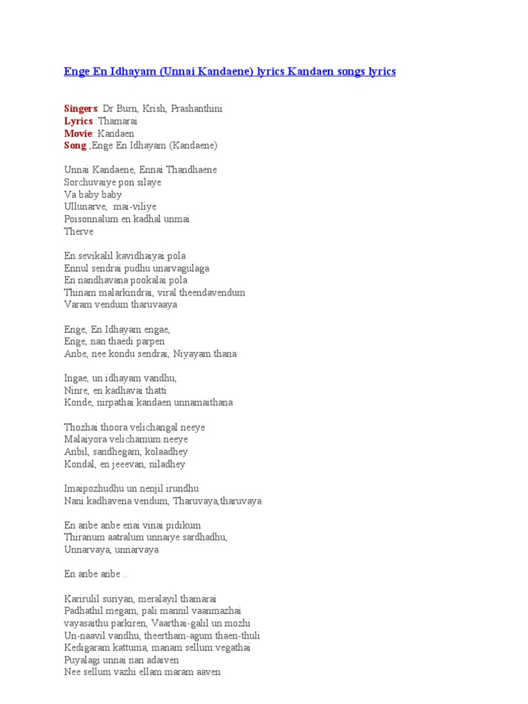En Idhayam Song Lyrics - En idhayam ularudhaa male :