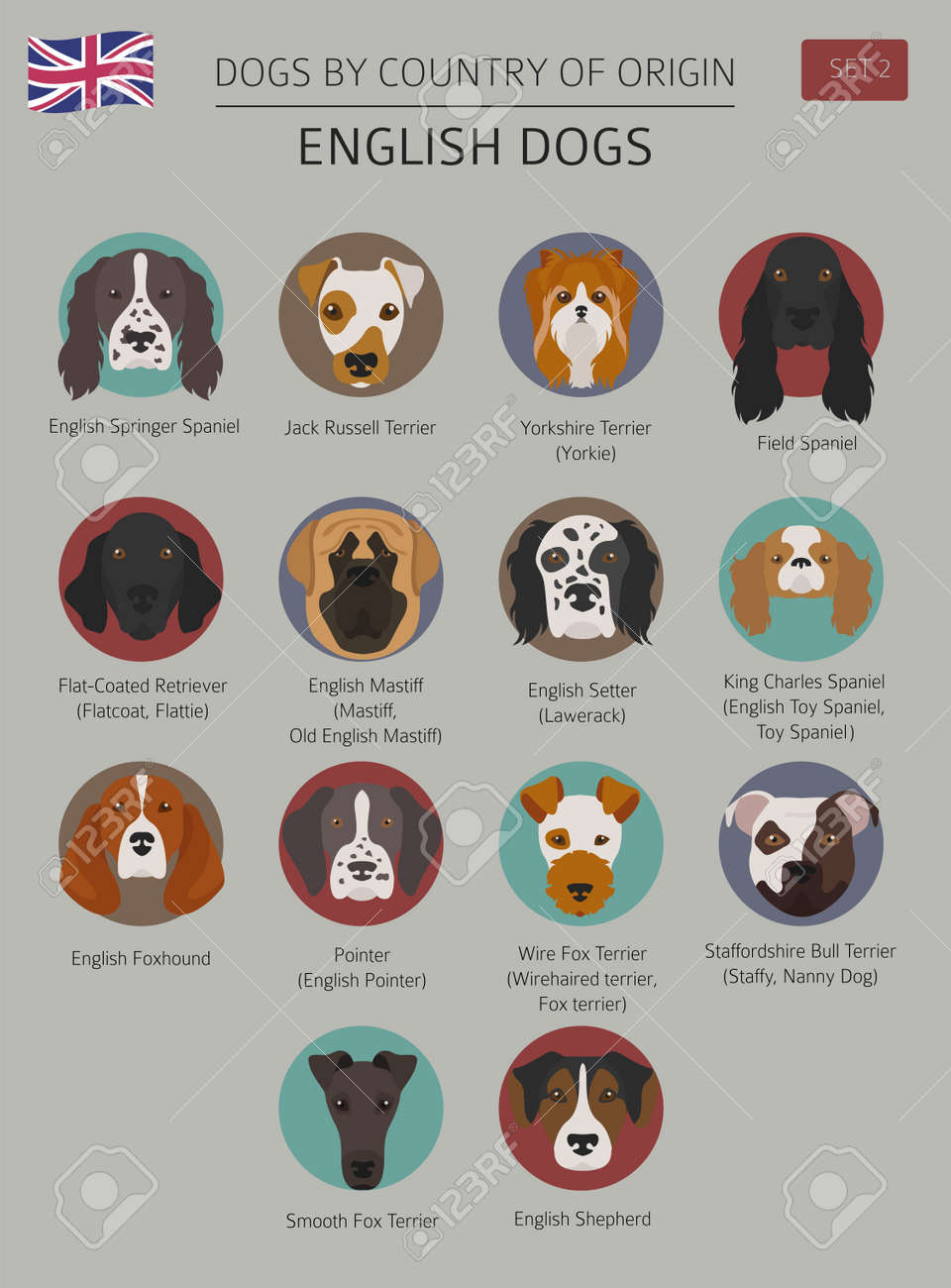 Dogs By Country Of Origin English Dog Breeds Stock Illustration 50793868 Pixta - Sometimes they inbreed dogs who have the same close ancestors, and sometimes they mix dogs from very different ancestors or even from different breeds.
