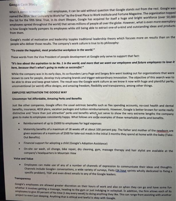 Solved Google Case Study When It Comes To Motivating Thei Chegg Com - Help employees protect their loved ones by assuring financial security to their beneficiaries in the event of their death, thus acting as a great.