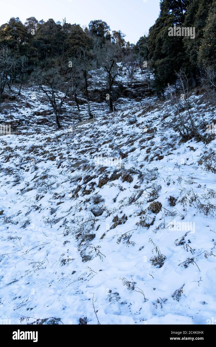 Snow Covered Mountain Slopes Hatu Peak Narkanda Himachal Pradesh India A Roadside View While Trekking To Agyaat Vaas Resort Stock Photo Alamy - Easy to moderate the hatu peak trek is a hidden gem lying in the lap of himalayas.