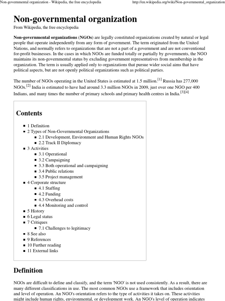 Non Governmental Organization Wikipedia - It has proved that these organisations are working for various parts of the world and are doing their work in serving the.
